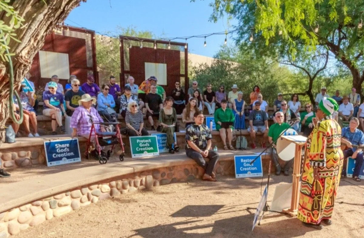 Each of the Witness for Creation events focuses on local issues relating to climate justice and creation care. Here in Arizona, our climate is tightly intertwined with how we must care for our most vulnerable neighbors in need, including migrants, the unhoused, and Indigenous Arizonans. As a result, our speakers focused on the sanctity and importance of wise water stewardship, the vulnerability of sacred sites, and, crucially, the escalating summer temperatures in our state.